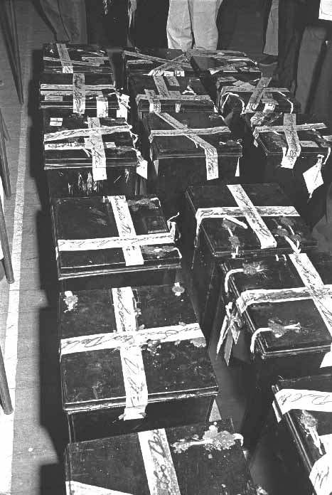 Sealed ballot boxes at the end of the Legislative Assembly Election, 1963.